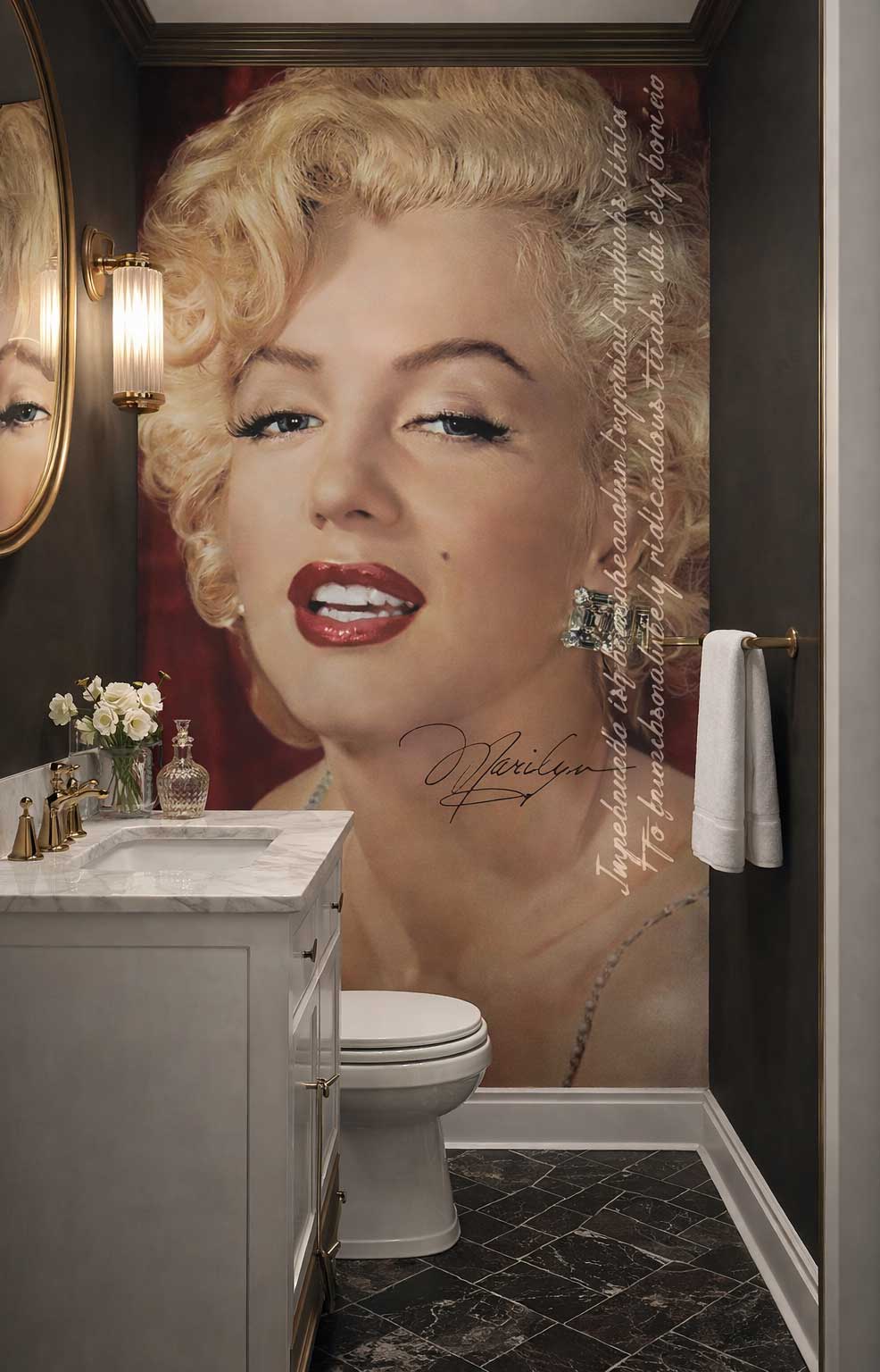 Ikonisches Wandbild mit Marilyn Monroe – individuell gestaltet für Bad oder Gäste-WC. Maßgefertigte Wandkunst aus der Serie „Räume mit Charakter“.